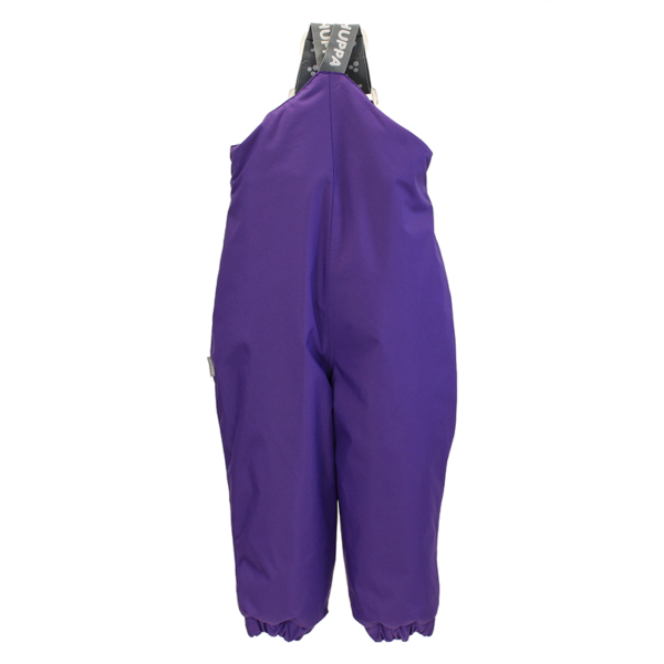 Children’s waterproof and windproof winter pants with 160 g of insulation. Breathable fabric. Soft flannel lining. The bib pants have elastic adjustable braces Integrated elastic band on waist and at leg ends. Taped centre-back seam. The long zipper and elastic bottom edge make it easier to dress the toddler. Elastic foot straps. Reflective elements on fabric.