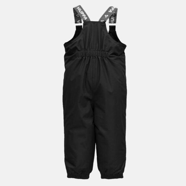 Children’s waterproof and windproof winter pants with 160 g of insulation. Breathable fabric. Soft flannel lining. The bib pants have elastic adjustable braces Integrated elastic band on waist and at leg ends. Taped centre-back seam. The long zipper and elastic bottom edge make it easier to dress the toddler. Elastic foot straps. Reflective elements on fabric.