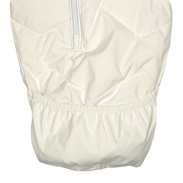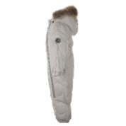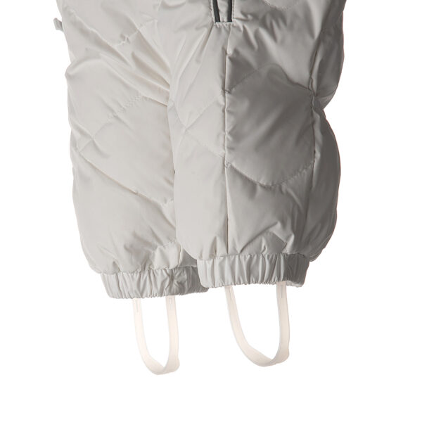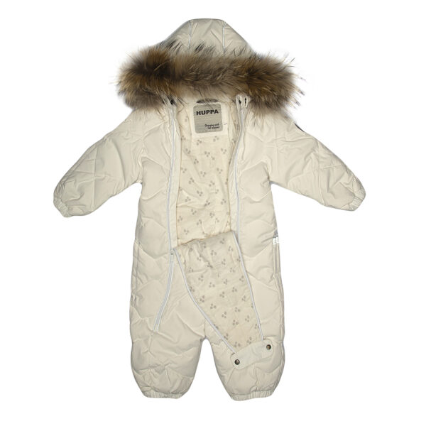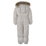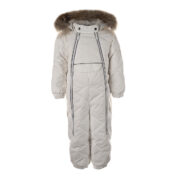 Babies’ waterproof and windproof soft overall with feather fill. Breathable fabric. Flannel lining on the inside. Integrated elastic band at sleeve and leg ends and at waist on the back. Sleeve and leg ends can be conveniently rolled down in sizes 62–80. Elastic foot straps. Removable faux fur trim on hood. Reflective elements on fabric.