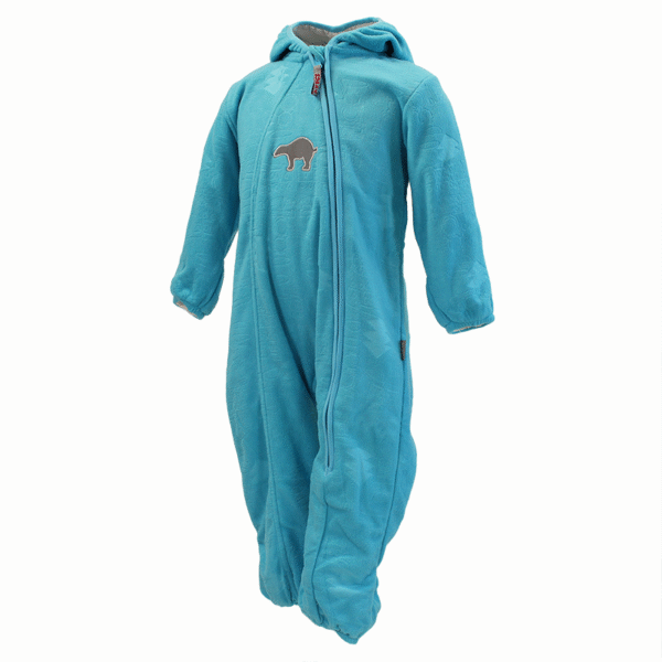 Children’s soft fleece overall. Cotton jersey lining. Sleeve and leg ends can be conveniently rolled down. Integrated elastic band at sleeve and leg ends and around hood. Zipper fastening. The overall is great for wearing on its own or in colder weather as an additional layer under outer garments. Reflective elements.