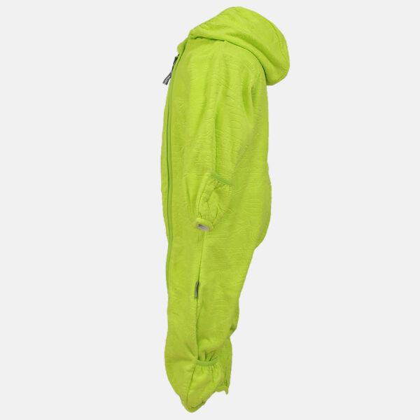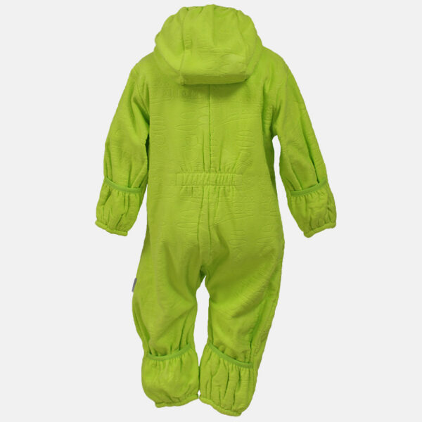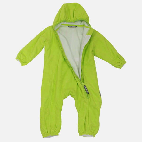 Children’s soft fleece overall. Cotton jersey lining. Sleeve and leg ends can be conveniently rolled down. Integrated elastic band at sleeve and leg ends and around hood. Zipper fastening. The overall is great for wearing on its own or in colder weather as an additional layer under outer garments. Reflective elements.
