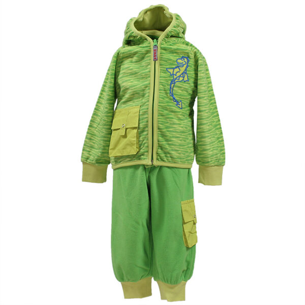 Children´s soft fleece set. Zipper closure on the fleece jacket. Pockets in the front. Ribbed cuffs at the sleeve ends. The set is suitable for wearing both separately and in colder weather as an intermediate layer under outerwear.