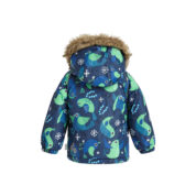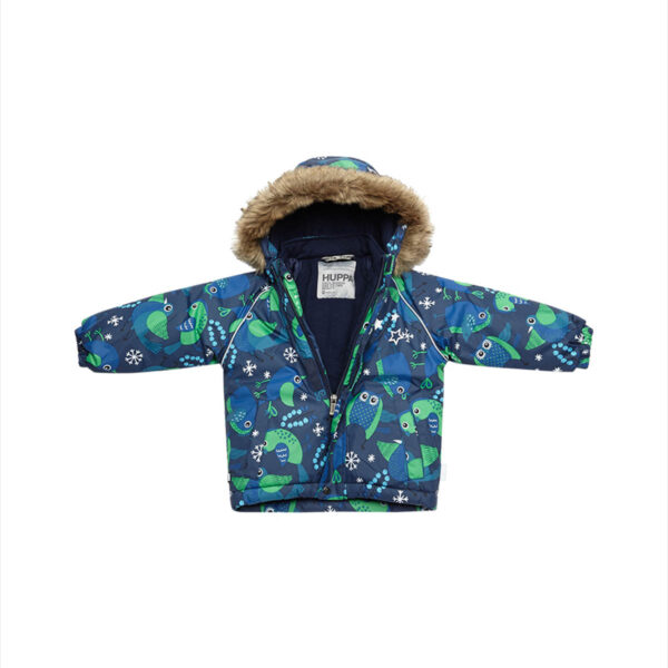 Bērnu ūdens un vēja necaurlaidīga jaka Gaisu caurlaidīgs virsējais audums Jakas odere no mīksta auduma Noņemamā kapuce pie apkakles stiprināma ar velkro Piedurknēm regulējama gumijas apdare Priekšpusē apšūts rāvējslēdzējs Priekšpusē apšūtas kabatas Kapucei mākslīgās kažokādas mala Auduma virspusē atstarojošas detaļas