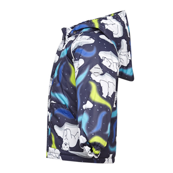 A classic winter jacket for toddlers with a thinner 140g insulation for everyday activities. The jacket has a cotton lining and a water and wind resistant outer fabric, which is suitable for warmer winter weather. For more comfortable wearing, the jacket has a removable hood, elastic cuffs and two great pockets for storing finds. Reflective details in the cutouts.