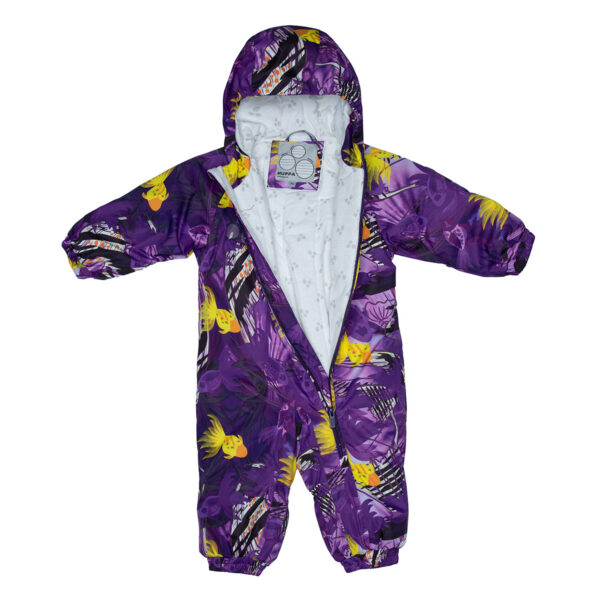A spring-autumn overall for toddlers. The overall has a wind and water resistant outer fabric, a soft cotton flannel lining and 100g insulation. The sleeve and leg ends can be rolled up in sizes 68-80. The long zipper makes dressing easy and quick, and the leg ends are also covered with the outer fabric from the inside. To make the child visible even in the dark, the overall has reflective details.