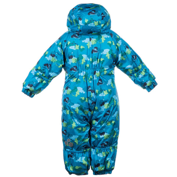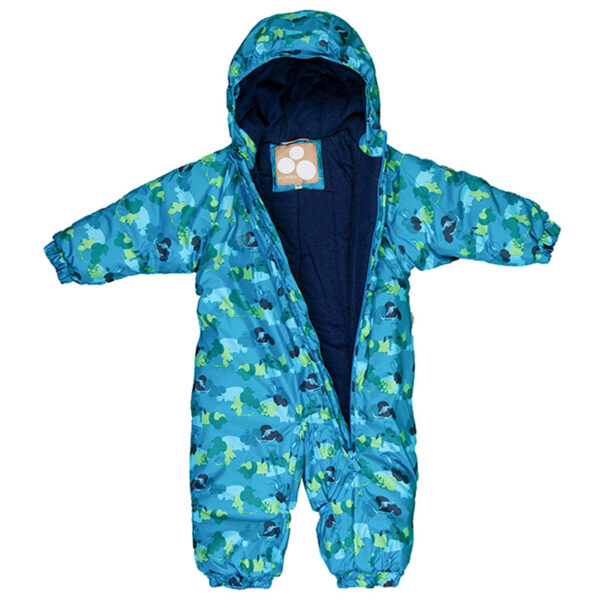 A winter overall for toddlers. The overall has a wind and water resistant outer fabric, a soft cotton flannel lining and 300g insulation. The sleeve and leg ends can be rolled up in sizes 68-80. The long zipper makes dressing easy and quick, and the leg ends are also covered with the outer fabric from the inside. To make the child visible even in the dark, the overall has reflective details.