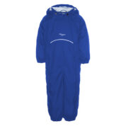 Children´s waterproof and windproof spring-autumn overalls. Breathable outer fabric. The inside of the overalls is made of flannel lining fabric. Rubber band incorporated at the ends of the sleeves and legs and at the edge of the hood. The removable hood attaches to the collar with press studs. Comfortably reversible sleeve and leg ends. Rubber band incorporated in the waste on the back. Waterproof taped seams. The overalls have no inseam on the leg. Removable rubber soles. Reflective details on the outer fabric.
