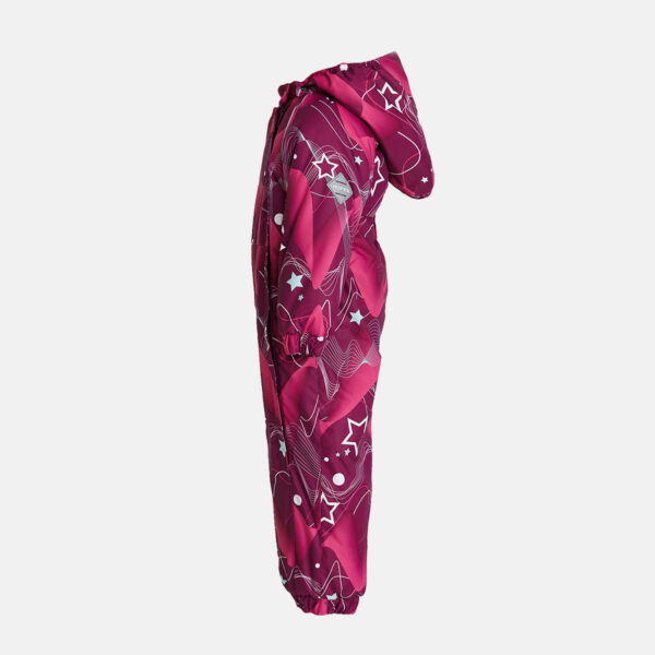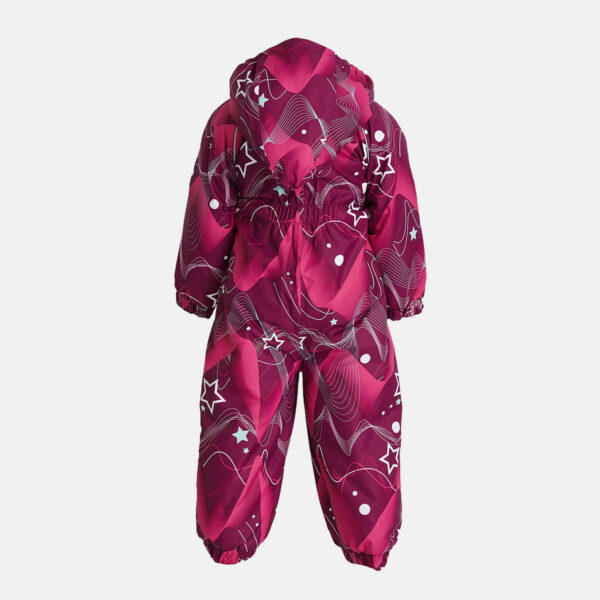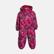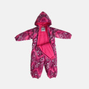 The overall is suitable both for babies or for toddlers who can already walk The overall has windproof and waterproof top fabric, nice and soft cotton flannel lining inside, and 200 g of insulation Breathable fabric Integrated elastic band at sleeve and leg ends and around hood Elastic foot straps Sleeve and leg ends can be conveniently rolled down in sizes 68–80 The long zippers make it easy to dress the child, the seams on the bottom and sides are taped and leg ends are covered with the top fabric from the inside to ensure the child stays dry Reflective elements have been added so that the child is visible in the dark The removable hood is safe for paying outside – it is secured by press-studs to avoid getting stuck A simple and safe choice for babies and toddlers!