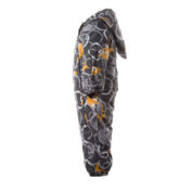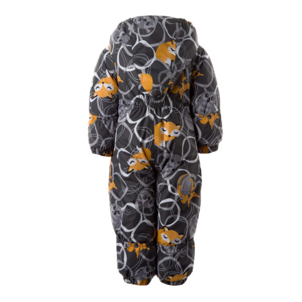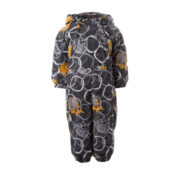 The overall is suitable both for babies or for toddlers who can already walk. The overall has windproof and waterproof top fabric, nice and soft cotton flannel lining inside, and 200 g of insulation. Breathable fabric. Integrated elastic band at sleeve and leg ends and around hood. Elastic foot straps. Sleeve and leg ends can be conveniently rolled down in sizes 68–80. The long zippers make it easy to dress the child, the seams on the bottom and sides are taped and leg ends are covered with the top fabric from the inside to ensure the child stays dry. Reflective elements have been added so that the child is visible in the dark. The removable hood is safe for paying outside – it is secured by press-studs to avoid getting stuck.