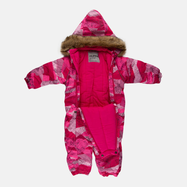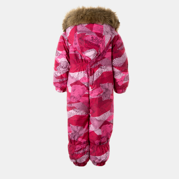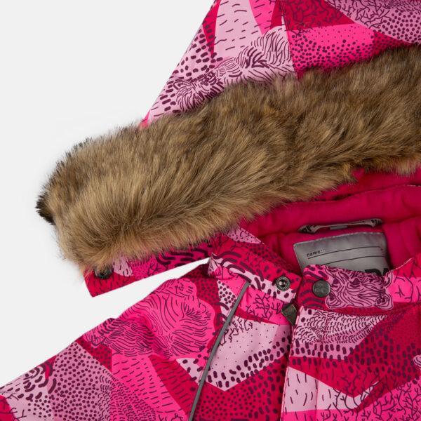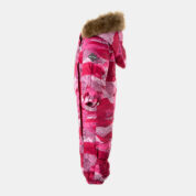 Children’s waterproof and windproof overall. Breathable fabric. Suitable for both babies or for toddlers who can already walk. Nice and soft flannel lining on the inside. Integrated elastic band at sleeve and leg ends. Removable hood attaches to the collar with press-studs to ensure safety when the wearer gets stuck. Sleeve and leg ends can be conveniently rolled down in sizes 68–80. Waterproof taped seams. The overall has no inner leg seam. Elastic foot straps. Removable faux fur trim on hood. Reflective elements on the fabric add safety when wearing in the dark.