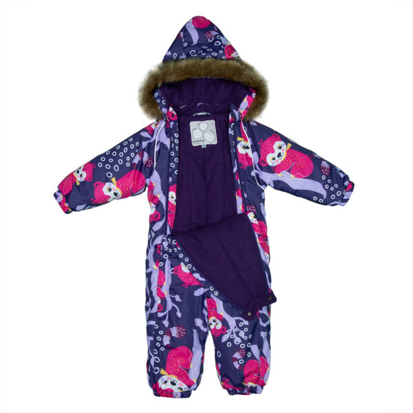 Children’s waterproof and windproof overall. Breathable fabric. Suitable for both babies or for toddlers who can already walk. Nice and soft flannel lining on the inside. Integrated elastic band at sleeve and leg ends. Removable hood attaches to the collar with press-studs to ensure safety when the wearer gets stuck. Sleeve and leg ends can be conveniently rolled down in sizes 68–80. Waterproof taped seams. The overall has no inner leg seam. Elastic foot straps. Removable faux fur trim on hood. Reflective elements on the fabric add safety when wearing in the dark.