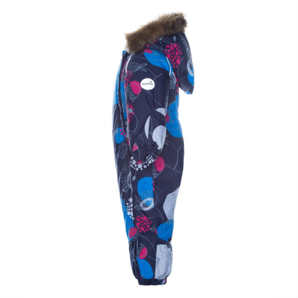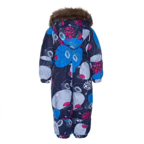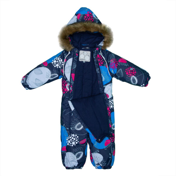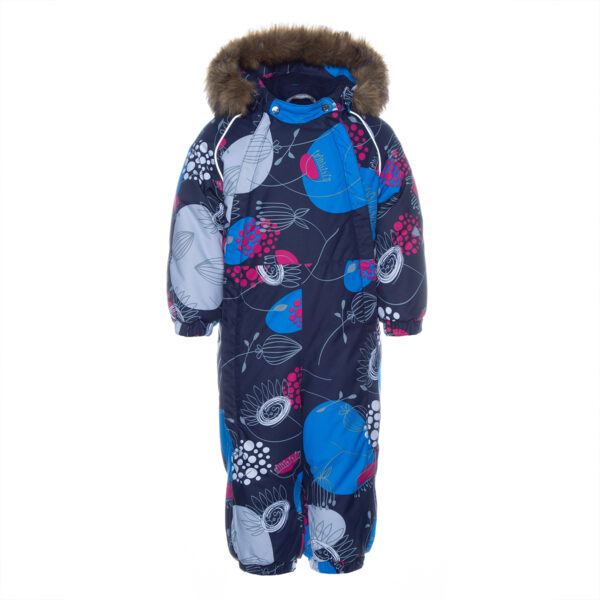 Children’s waterproof and windproof overall. Breathable fabric. Suitable for both babies or for toddlers who can already walk. Nice and soft flannel lining on the inside. Integrated elastic band at sleeve and leg ends. Removable hood attaches to the collar with press-studs to ensure safety when the wearer gets stuck. Sleeve and leg ends can be conveniently rolled down in sizes 68–80. Waterproof taped seams. The overall has no inner leg seam. Elastic foot straps. Removable faux fur trim on hood. Reflective elements on the fabric add safety when wearing in the dark.