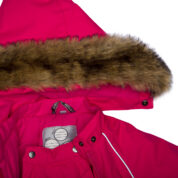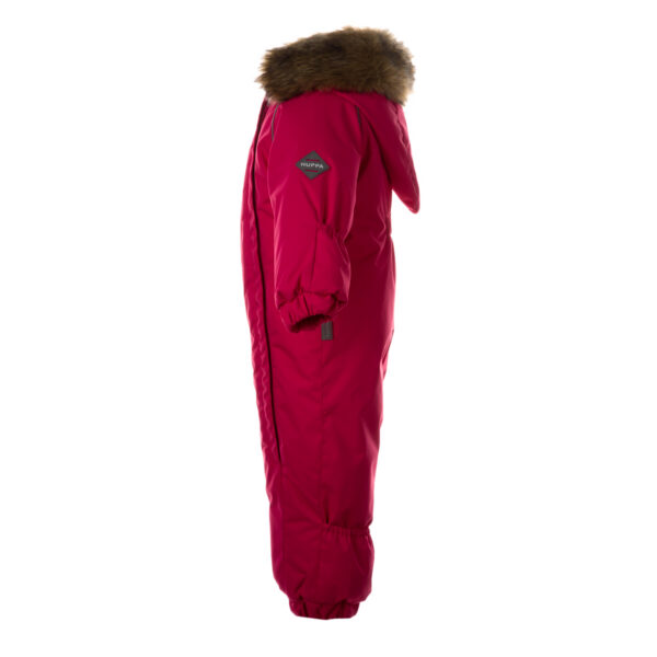 Children’s waterproof and windproof overall. Breathable fabric. Suitable for both babies or for toddlers who can already walk. Nice and soft flannel lining on the inside. Integrated elastic band at sleeve and leg ends. Removable hood attaches to the collar with press-studs to ensure safety when the wearer gets stuck. Sleeve and leg ends can be conveniently rolled down in sizes 68–80. Waterproof taped seams. The overall has no inner leg seam. Elastic foot straps. Removable faux fur trim on hood. Reflective elements on the fabric add safety when wearing in the dark.