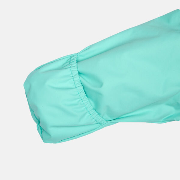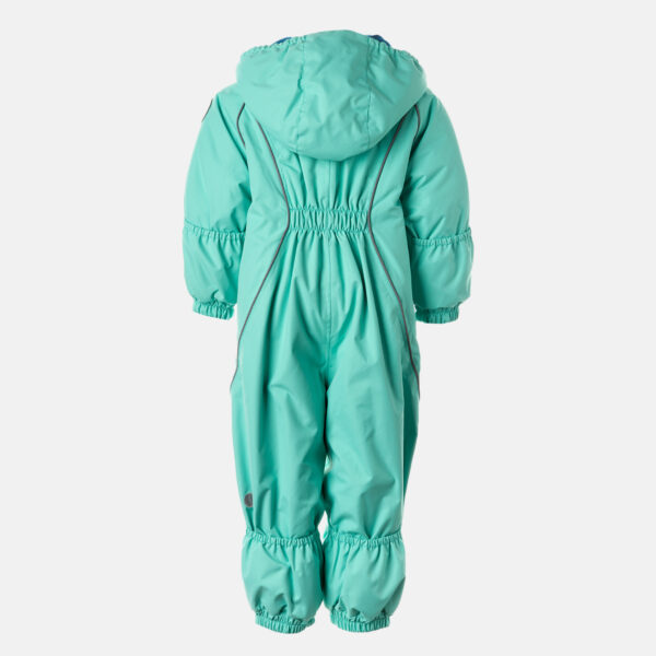 Kūdikių neperšlampamas ir neperpučiamas demisezoninis kombinezonas. Orui laidi išorinė medžiaga. Kombinezono vidus iš flanelinio pamušalinio audinio. Rankovių ir klešnių apačioje ir gobtuvo krašte įsiūta guminė juostelė. Nuimamas gobtuvas prie apykaklės prisegamas kibiu lipduku 68–80 dydžiuose patogūs atverčiami rankogaliai ir klešnių apačia. Vandeniui atsparios klijuotos siūlės. Komplekte yra silikoninės ir guminės juostelės tvirtinimui prie batų. Viršutinis audinys su šviesą atspindinčiomis detalėmis.