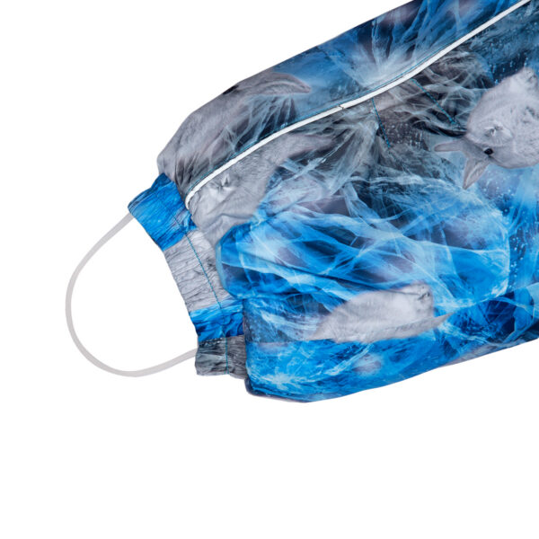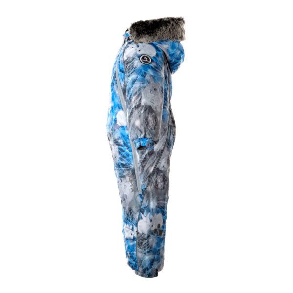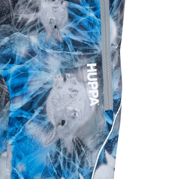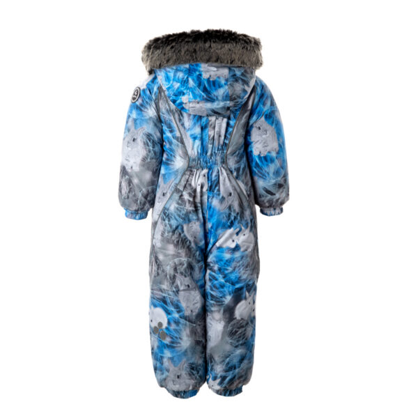 Babies’ modern waterproof and windproof winter overall. Breathable fabric. Flannel lining on the inside. Integrated elastic band at sleeve and leg ends and at waist on the back. The removable snap-on hood is safe for when the child gets stuck when playing outside. Sleeve and leg ends can be conveniently rolled down in sizes 68–80. Waterproof taped seams. The product comes with both silicone and rubber foot straps. Faux fur trim on hood. The high-performance top fabric is great to wear for children in any winter weather. The insides of leg ends are also covered with the main fabric to keep the child dry. Numerous reflective elements on the top fabric ensure visibility from all sides in the dark winter time.
