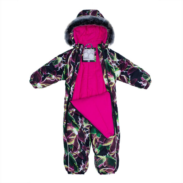 Babies’ modern waterproof and windproof winter overall. Breathable fabric. Flannel lining on the inside. Integrated elastic band at sleeve and leg ends and at waist on the back. The removable snap-on hood is safe for when the child gets stuck when playing outside. Sleeve and leg ends can be conveniently rolled down in sizes 68–80. Waterproof taped seams. The product comes with both silicone and rubber foot straps. Faux fur trim on hood. The high-performance top fabric is great to wear for children in any winter weather. The insides of leg ends are also covered with the main fabric to keep the child dry. Numerous reflective elements on the top fabric ensure visibility from all sides in the dark winter time.