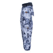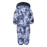 Babies’ waterproof and windproof winter overall. Breathable fabric. Flannel lining on the inside. Integrated elastic band at sleeve and leg ends and at waist on the back. Removable snap-on hood. Sleeve and leg ends can be conveniently rolled down in sizes 68–80. Waterproof taped seams. The overall has no inner leg seam. The product comes with both silicone and rubber foot straps. Faux fur trim on hood. Reflective elements on fabric.