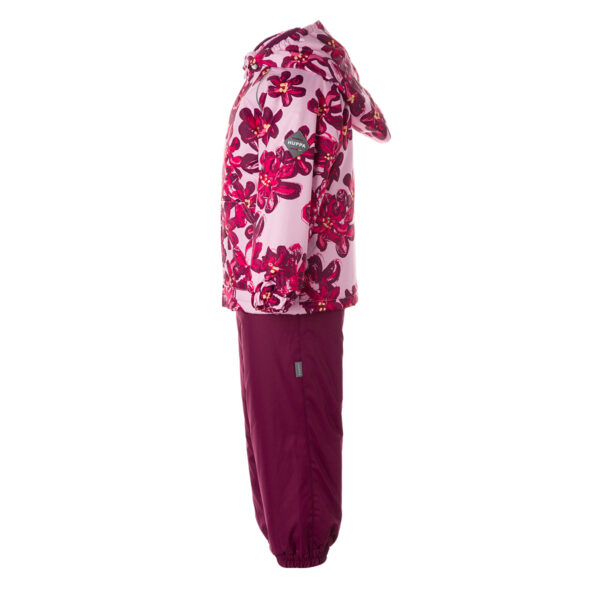 Children´s set with a thinner 140g of insulation, perfect for everyday activities. The set has a soft cotton flannel lining and a water and windproof breathable outer fabric. The pants have 80g insulation and are in a color that matches the jacket pattern. The high-waisted pants have a taped seat seam, which allows the toddler to enjoy winter joys without worry and stay dry and warm at the same time. For more comfortable wearing, the set has a removable hood, adjustable elastic suspenders and two great pockets for storing finds. Reflective details in the cutouts allow for safe play even in the dark.