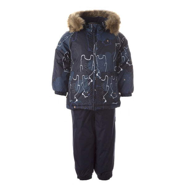 Children´s winter set. The set has a nice soft cotton flannel lining and breathable and waterproof outer fabric that is well suited to our climate. The jacket has 300g and the pants have 160g of insulation. The high-waisted pants have a taped seat seam, which allows the toddler to enjoy winter joys without worry and stay dry and warm at the same time. For more comfortable wearing, the set has a removable fur hood, adjustable elastic suspenders and two great pockets for storing finds. Reflective details in the cutouts allow for safe play even in the dark.