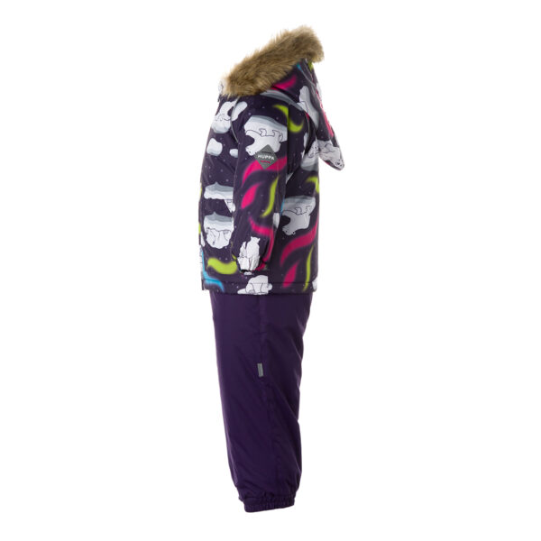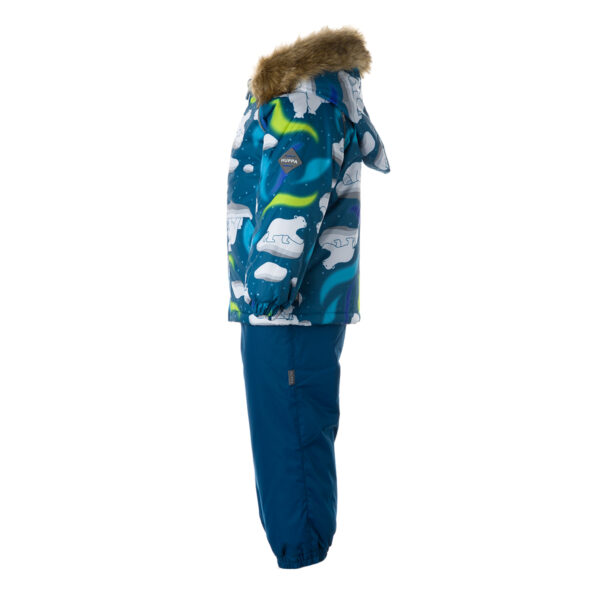 Children´s winter set. The set has a nice soft cotton flannel lining and breathable and waterproof outer fabric that is well suited to our climate. The jacket has 300g and the pants have 160g of insulation. The high-waisted pants have a taped seat seam, which allows the toddler to enjoy winter joys without worry and stay dry and warm at the same time. For more comfortable wearing, the set has a removable fur hood, adjustable elastic suspenders and two great pockets for storing finds. Reflective details in the cutouts allow for safe play even in the dark.