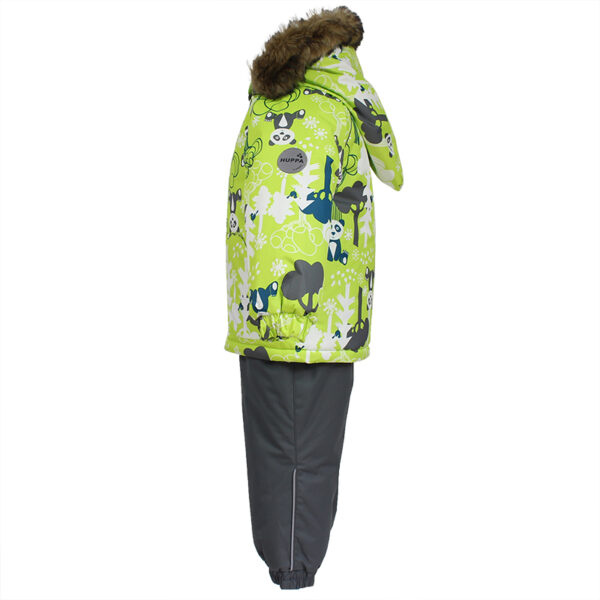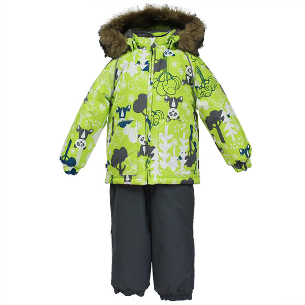 Children´s winter set. The set has a nice soft cotton flannel lining and breathable and waterproof outer fabric that is well suited to our climate. The jacket has 300g and the pants have 160g of insulation. The high-waisted pants have a taped seat seam, which allows the toddler to enjoy winter joys without worry and stay dry and warm at the same time. For more comfortable wearing, the set has a removable fur hood, adjustable elastic suspenders and two great pockets for storing finds. Reflective details in the cutouts allow for safe play even in the dark.