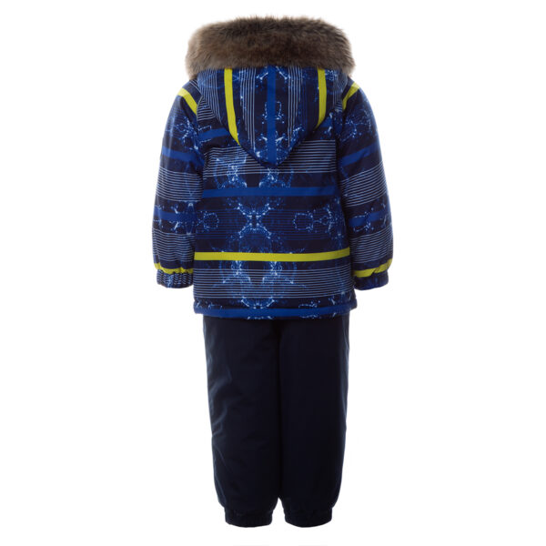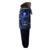 Children´s winter set. The set has a nice soft cotton flannel lining and breathable and waterproof outer fabric that is well suited to our climate. The jacket has 300g and the pants have 160g of insulation. The high-waisted pants have a taped seat seam, which allows the toddler to enjoy winter joys without worry and stay dry and warm at the same time. For more comfortable wearing, the set has a removable fur hood, adjustable elastic suspenders and two great pockets for storing finds. Reflective details in the cutouts allow for safe play even in the dark.