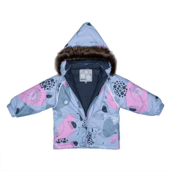 Children´s winter set. The set has a nice soft cotton flannel lining and breathable and waterproof outer fabric that is well suited to our climate. The jacket has 300g and the pants have 160g of insulation. The high-waisted pants have a taped seat seam, which allows the toddler to enjoy winter joys without worry and stay dry and warm at the same time. For more comfortable wearing, the set has a removable fur hood, adjustable elastic suspenders and two great pockets for storing finds. Reflective details in the cutouts allow for safe play even in the dark.