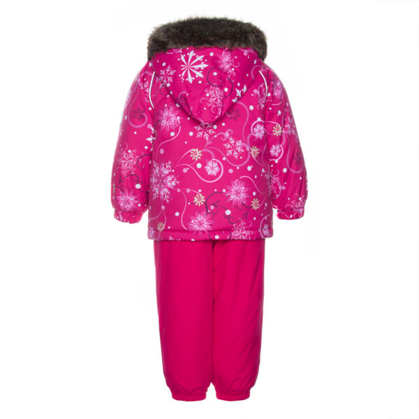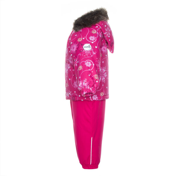 Children´s winter set. The set has a nice soft cotton flannel lining and breathable and waterproof outer fabric that is well suited to our climate. The jacket has 300g and the pants have 160g of insulation. The high-waisted pants have a taped seat seam, which allows the toddler to enjoy winter joys without worry and stay dry and warm at the same time. For more comfortable wearing, the set has a removable fur hood, adjustable elastic suspenders and two great pockets for storing finds. Reflective details in the cutouts allow for safe play even in the dark.