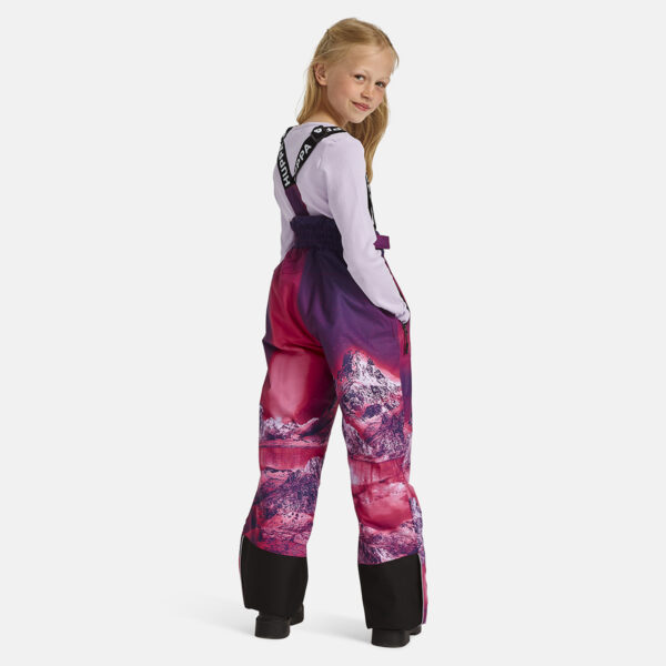 Vaikiškos neperšlampamos ir neperpučiamos kelnės Orui laidi išorinė medžiaga Kelnių vidinė pusė iš minkšto pamušalinio audinio Reguliuojamos nuimamos petnešos Reguliuojamas juosmens plotis Nugaroje, juosmenyje įsiūta guminė juostelė Įsiūtos kišenės su užtrauktuku Klešnių apačioje apsaugos nuo sniego Klešnių apačios plotis reguliuojamas užtrauktuku Vandeniui atsparios siūlės Kelnių apačioje šviesą atspindinčios detalės