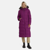 Women’s water- and windproof winter coat with 400 g insulation. Breathable outer fabric. Soft lining fabric inside the coat. Detachable hood fastens to the collar with snap buttons. Ribbed cuffs on sleeves. Rubber cord tunnel with stoppers on the waistline. Front two-way zipper. Detachable faux fur trim on hood. Reflective detailing has been added to the outer fabric of the coat for better visibility in the dark.