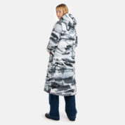 Women´s waterproof and windproof down coat. Breathable outer fabric. Soft lining fabric. Filled with down and feathers. Removable hood attaches to the collar with a zipper. Ribbed cuffs at the sleeve ends. Two-way zipper closure, snap closure at the bottom. Reflective details on the outer fabric.