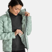 Insulated (80 g) water-repellent and windproof between-seasons jacket for women. The filling used for the jacket is an innovative recycled material that imitates the properties of a feather filling. The material is warm, dries fast and will not get lumpy after being washed. The top layer of the jacket is breathable, light and UV-resistant. The fabric is made with recycled fibres. The lining of the jacket is soft. The pockets have zippers.