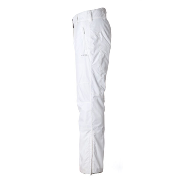 Comfortable waterproof and windproof women’s pants with 80 g of insulation. Breathable fabric. Soft mesh lining on the inside of the pants. Integrated elastic band at the back of the waist. Snow gaiters at leg ends. Zipper-adjustable leg end width. Waterproof taped seams. Reflective elements on fabric.