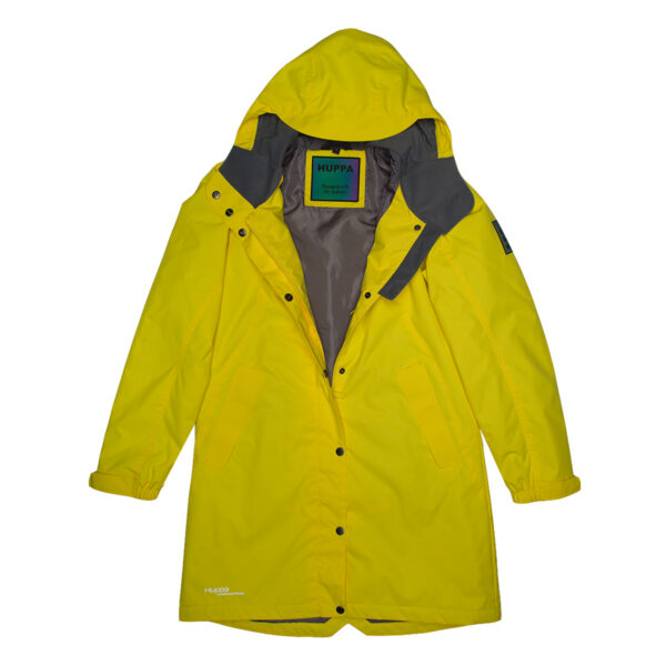 Women’s waterproof and windproof between-seasons parka. Breathable fabric. Soft lining on the inside. Adjustable hood and sleeve ends. Drawstring tunnel with stoppers on waist. Waterproof taped seams. Reflective elements on fabric.