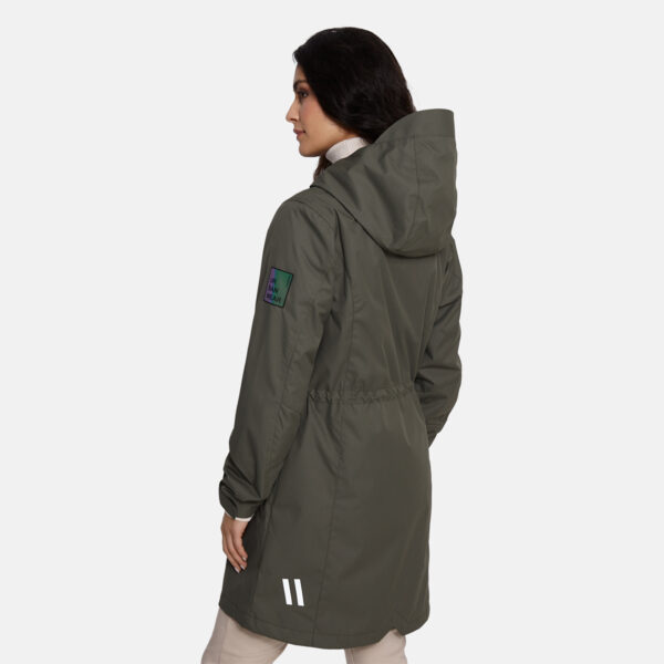 Bērnu ūdens un vēja necaurlaidīga jaka. Gaisu caurlaidīgs virsējais audums. Mīksta jakas odere. Noņemamā kapuce pie apkakles stiprināma ar velkro aizdari. Piedurknēs un kapucē iestrādāta gumijas apdare. Priekšpusē apšūta rāvējslēdzēja aizdare. Priekšpusē kabatas. Auduma virspusē atstarojošas detaļas.