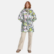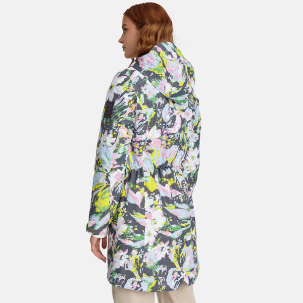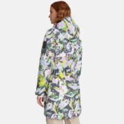 Women’s waterproof and windproof spring and autumn parka. Breathable fabric. Soft lining on the inside. Adjustable hood and sleeve ends. Drawstring tunnel with stoppers on waist. Waterproof taped seams. Reflective elements on fabric.