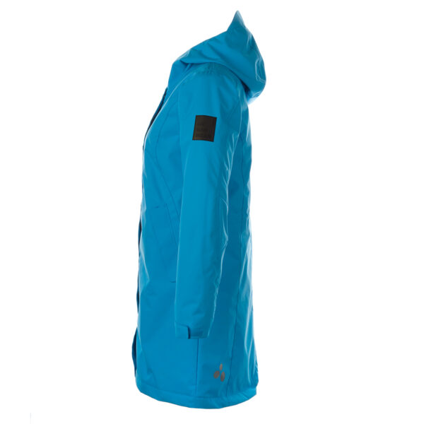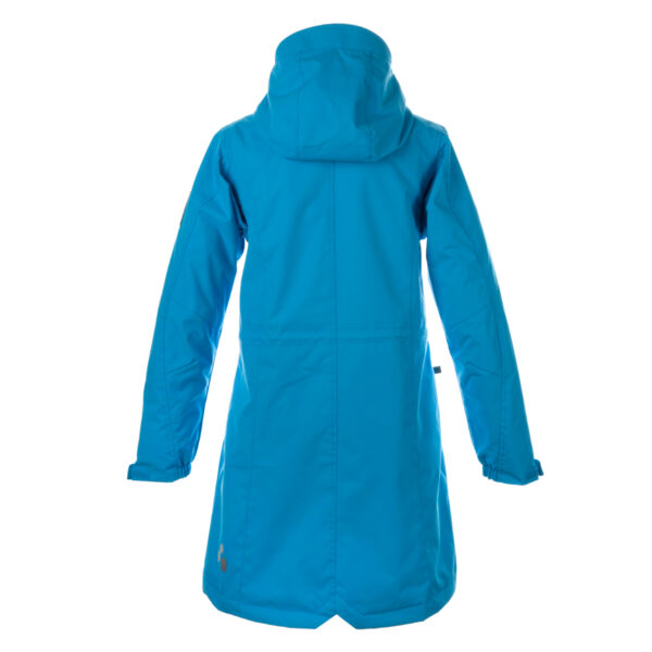 Women´s waterproof and windproof semi-season parka. Breathable outer fabric. The inside of the parka is made of soft lining fabric. Rubber band incorporated at the edge of the hood. Adjustable sleeve ends. Rubber band tunnel with stoppers on the waistline. The parka has a waterproof taped armhole and neck, hood, and shoulder seams. Reflective details on the outer fabric.