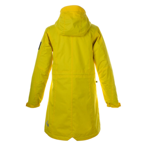 Women´s waterproof and windproof semi-season parka. Breathable outer fabric. The inside of the parka is made of soft lining fabric. Rubber band incorporated at the edge of the hood. Adjustable sleeve ends. Rubber band tunnel with stoppers on the waistline. The parka has a waterproof taped armhole and neck, hood, and shoulder seams. Reflective details on the outer fabric.