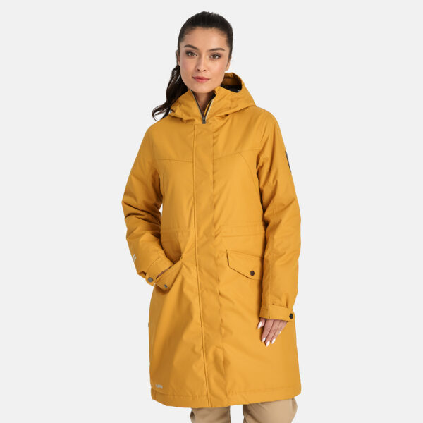 Insulated (100 g) water- and windproof between-seasons parka for women. The top layer of the parka is made of a breathable material. It is has soft lining, an adjustable hood and sleeve cuffs, as well as an adjustable waist with stoppers. It has waterproof, taped seams and is decorated with reflective details.