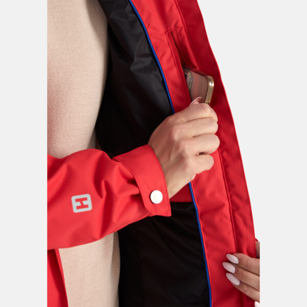Insulated (100 g) water- and windproof between-seasons parka for women. The top layer of the parka is made of a breathable material. It is has soft lining, an adjustable hood and sleeve cuffs, as well as an adjustable waist with stoppers. It has waterproof, taped seams and is decorated with reflective details.