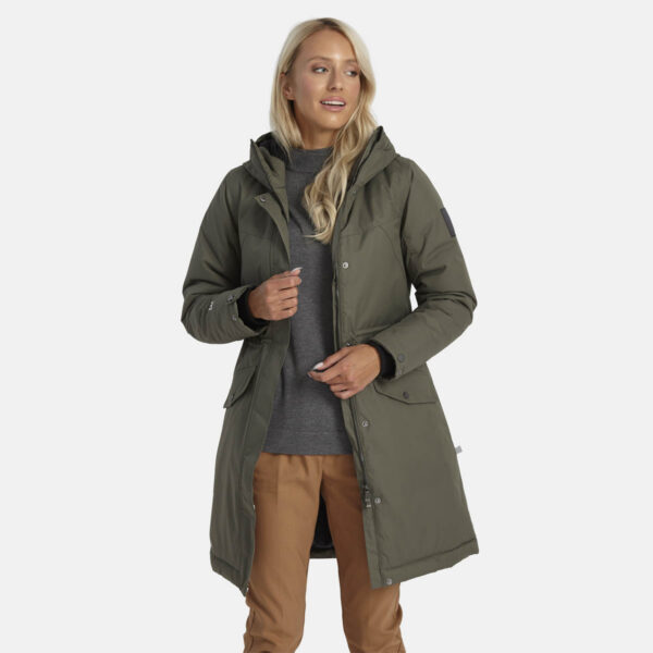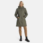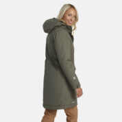 Women’s water- and windproof winter parka with 300 g insulation. Breathable outer fabric. Soft lining fabric inside the parka. Adjustable hood and sleeve cuffs. Rubber cord tunnel with stoppers on the waistline. Waterproof taped seams. Reflective detailing on outer fabric.