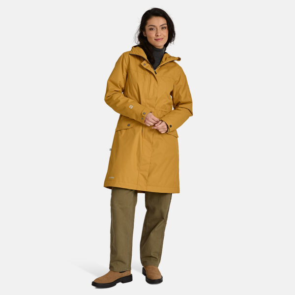 Insulated (40 g) water- and windproof parka for women, suitable for spring and autumn. The outer fabric is breathable. The lining of the parka is soft. Adjustable hood and sleeve cuffs. Adjustable waist with stoppers. Waterproof taped seams. The outer fabric is decorated with reflective details.