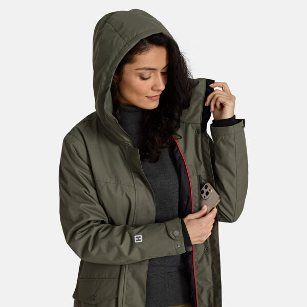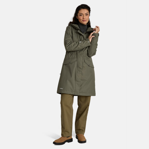 Ūdens un vēja noturīga pavasara-rudens parka ar 40 g siltinājumu sievietēm. Elpojošs virsaudums. Parkas iekšpusē mīksts oderaudums. Regulējama kapuce un piedurkņu gali. Jostas līnijā savelkoša aukla. Ūdensnoturīgas, stepētas šuves. Uz virsauduma atstarojošas detaļas.