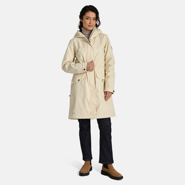 Ūdens un vēja noturīga pavasara-rudens parka ar 40 g siltinājumu sievietēm. Elpojošs virsaudums. Parkas iekšpusē mīksts oderaudums. Regulējama kapuce un piedurkņu gali. Jostas līnijā savelkoša aukla. Ūdensnoturīgas, stepētas šuves. Uz virsauduma atstarojošas detaļas.