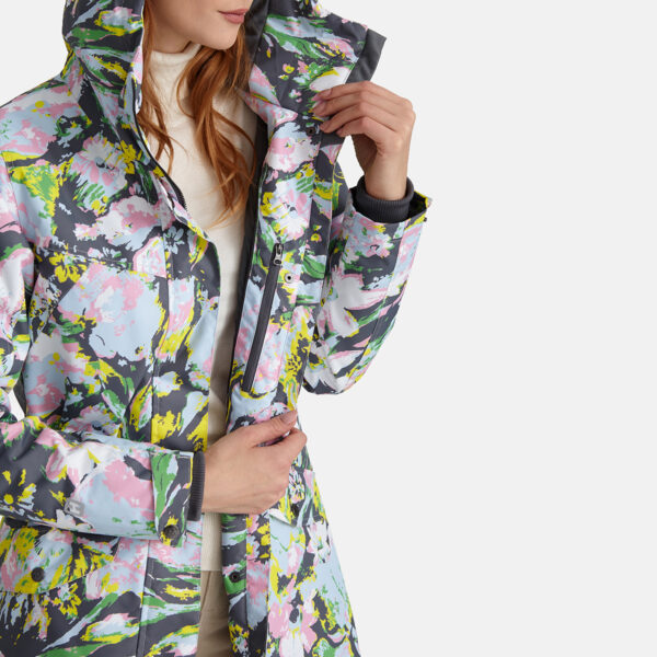 Insulated (40 g) water- and windproof parka for women, suitable for spring and autumn. The outer fabric is breathable. The lining of the parka is soft. Adjustable hood and sleeve cuffs. Adjustable waist with stoppers. Waterproof taped seams. The outer fabric is decorated with reflective details.