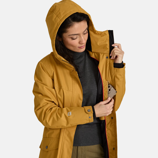Insulated (40 g) water- and windproof parka for women, suitable for spring and autumn. The outer fabric is breathable. The lining of the parka is soft. Adjustable hood and sleeve cuffs. Adjustable waist with stoppers. Waterproof taped seams. The outer fabric is decorated with reflective details.