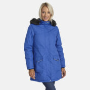 Women’s waterproof and windproof winter parka. Breathable fabric. Soft lining on the insid.e Removable snap-on hood. Ribbed cuffs at sleeve ends. Drawstring tunnel with stoppers on waist. Waterproof taped seams. Faux fur trim on hood. Reflective elements on fabric.