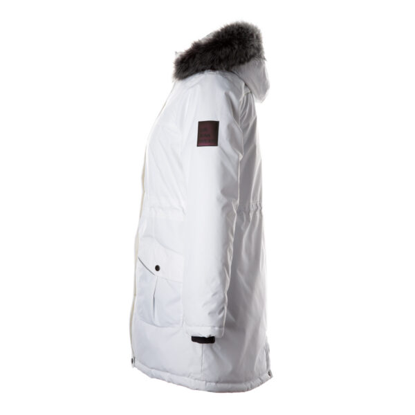 Naiste vee- ja tuulekindel talveparka. Hingav pealiskangas. Parka sisepool pehmest voodrikangast. Eemaldatav kapuuts kinnitub kraele trukkidega. Varrukaotstes soonikmansett. Vööjoonel stopperitega kumminööritunnel. Vettpidavad teibitud õmblused. Kapuutsil kunstkarusnahast ääris. Pealiskangal helkurdetailid.