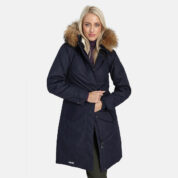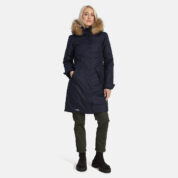 Women’s water- and windproof winter parka with 200 g insulation. Breathable outer fabric. Soft fabric on the inside of the parka. Sheepskin imitation lining at the upper back and inside of the hood. Adjustable hood. Ribbed cuffs on sleeves. Adjustable sleeve cuffs. Front two-way zipper with a snap button placket. Rubber cord tunnel with stoppers on the waistband. Waterproof taped seams. Detachable natural fur trim on hood. Reflective detailing on outer fabric.