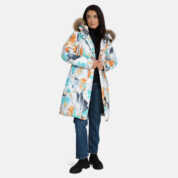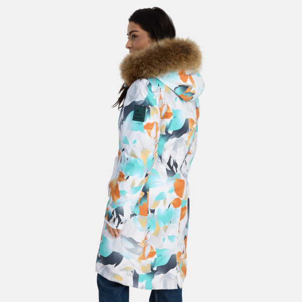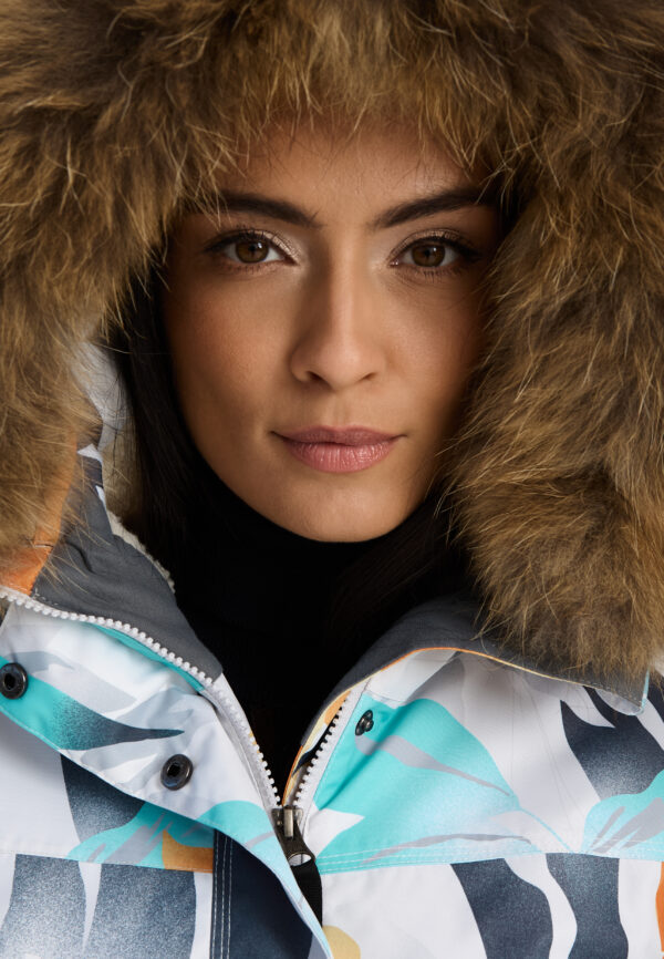 Women’s water- and windproof winter parka with 200 g insulation. Breathable outer fabric. Soft fabric on the inside of the parka. Sheepskin imitation lining at the upper back and inside of the hood. Adjustable hood. Ribbed cuffs on sleeves. Adjustable sleeve cuffs. Front two-way zipper with a snap button placket. Rubber cord tunnel with stoppers on the waistband. Waterproof taped seams. Detachable natural fur trim on hood. Reflective detailing on outer fabric.